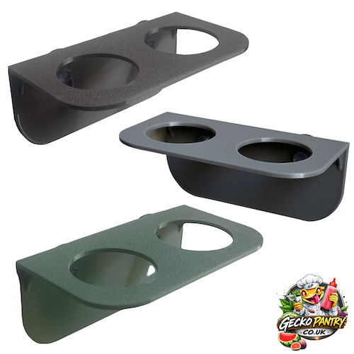 This compact suction cup feeding ledge is ideal for baby, juvenile, and smaller gecko species. Designed specifically to hold silicone bottle tops ( can be purchased with or without silicone bowls), it creates a secure and elevated feeding station perfect for arboreal geckos that prefer to feed off the ground.